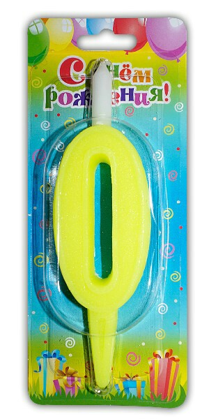 Свеча для торта Цифра Разноцвет "0"
