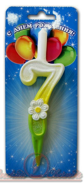 Свеча для торта Цифра С ромашками "7"