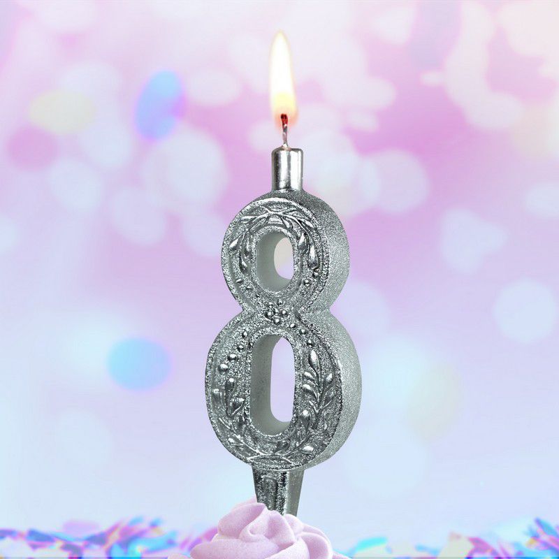 Свеча для торта Цифра Серебряная узорная "8"