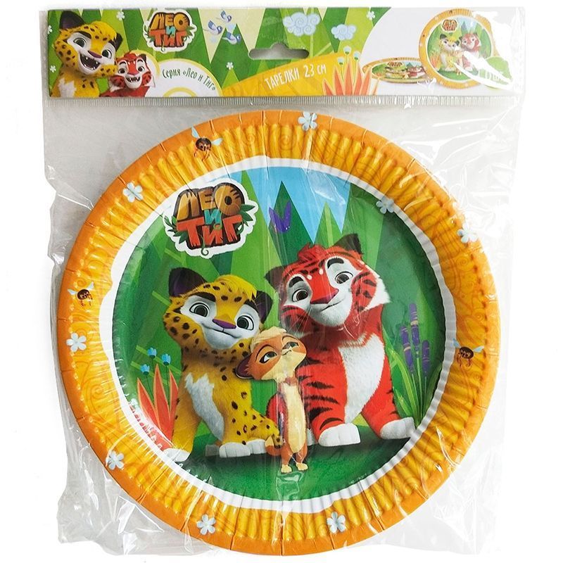 Российский мультсериал «Лео и Тиг» популярен как у мальчиков, так и у девочек, а ещё он получил награду «Лучшая 2D графика российского анимационного фильма» на премии «Мультимир». Он транслируется на телеканалах «Карусель», «Мульт» «Тлум HD», "Ani" и "Супер". Сюжет мультсериала строится вокруг приключений двух друзей - маленького леопарда Лео и тигрёнка Тига, которых повсюду сопровождают их верные друзья: ласка Мила, рысь Редьяра, кабан Куба. Они вместе веселятся, познают мир, выручают друг друга, противостоят братьям харзам и проходят через различные жизненные испытания. Оформление детского праздника лицензионным дизайном «Лео и Тиг» подойдёт как для мальчиков, так и для девочек. Праздничные тарелки «Лео и Тиг» идеально украсят банкет. Тарелки подходят как для холодных, так и горячих блюд.