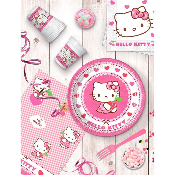 Праздничные тарелки "Хэллоу - Китти" / Hello Kitty Hearts идеально украсят любое праздничное детское мероприятие для девочки.