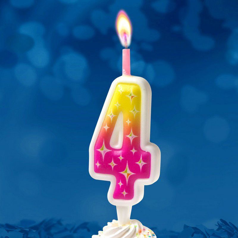 Свеча для торта Цифра Цветное пламя "4"