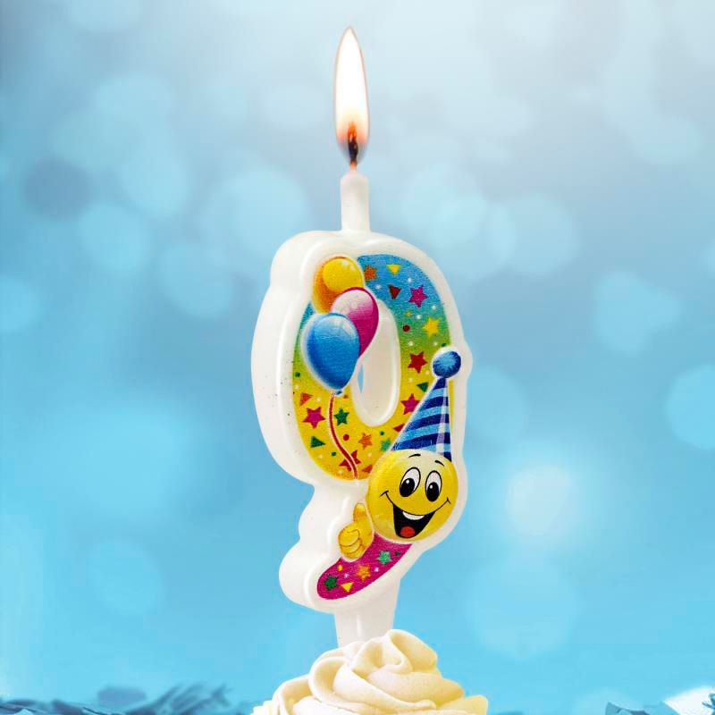 Свеча для торта Цифра Смайлик с шарами "9"