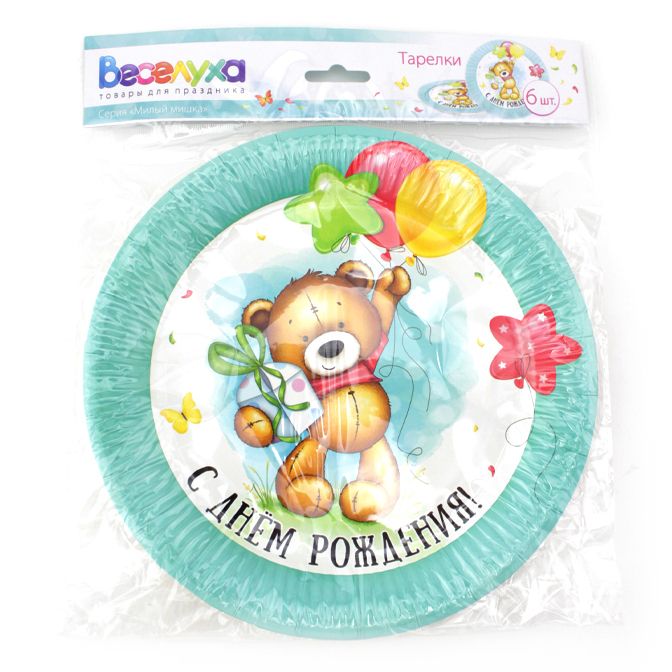 Праздничные тарелки «С Днем рождения» Милый Мишка идеально украсят праздничный стол. Тарелки подходят как для холодных, так и горячих блюд.