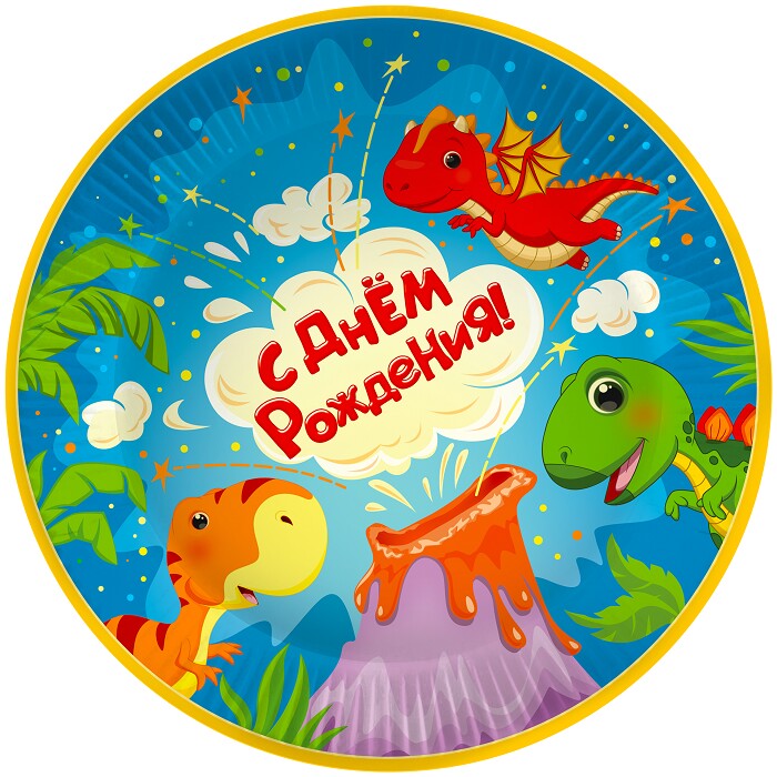 Тарелки бумага 180мм С Днем Рождения Динозаврики уп6