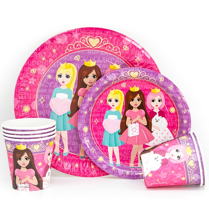Тарелки бумага 180мм Куклы Принцессы Сиреневый розовый уп6