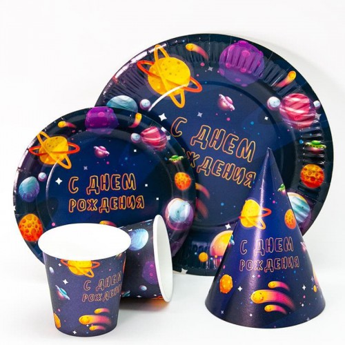 Тарелки бумага 230мм С Днем Рождения Космос уп6