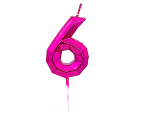 Свеча для торта Цифра Диамант Маджента "6" 4,5см
