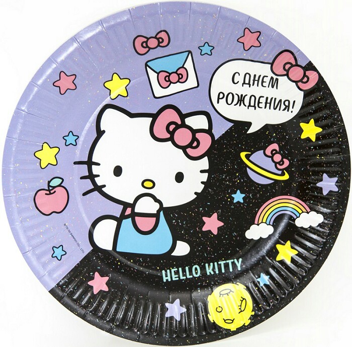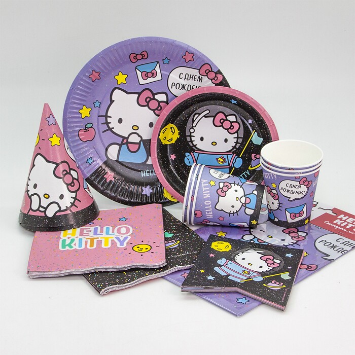 Красочная одноразовая посуда с любимыми персонажами «Hello Kitty» станет дополнительным украшением торжества, а также поможет минимизировать время организации знаменательного события.