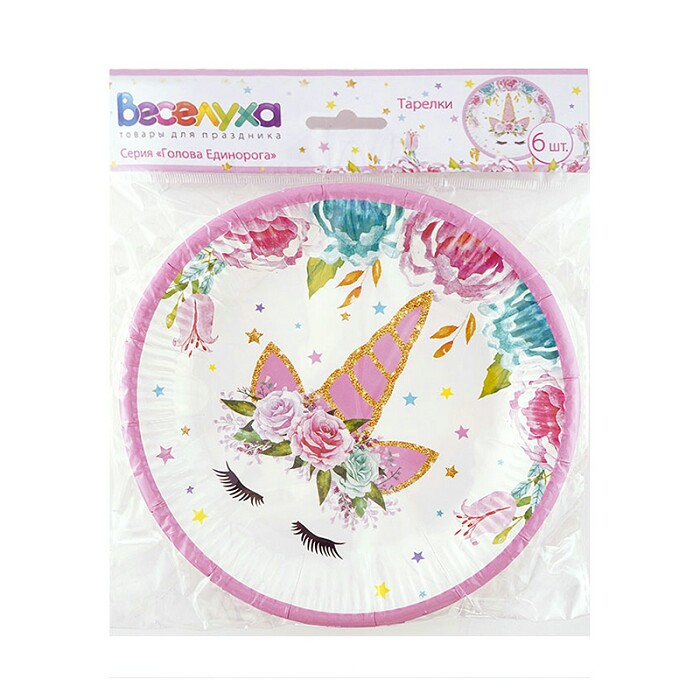 Праздничные тарелки «Голова Единорога» идеально украсят праздничное мероприятие. Тарелки подходят как для холодных, так и горячих блюд.