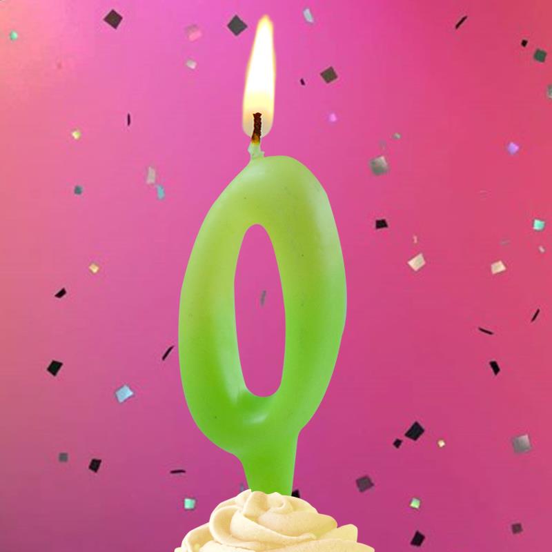Свеча для торта Цифра Люминесцентная "0" 8см