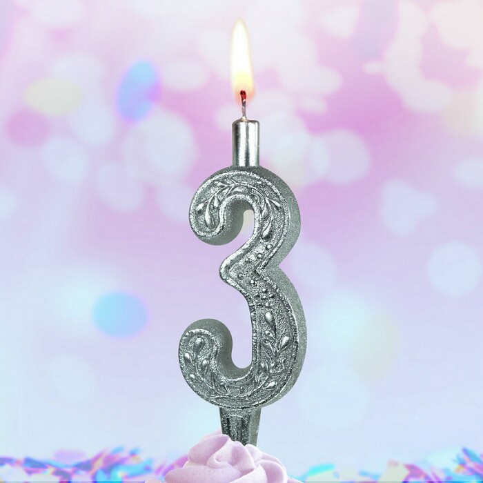 Свеча для торта Цифра Серебряная узорная "3"