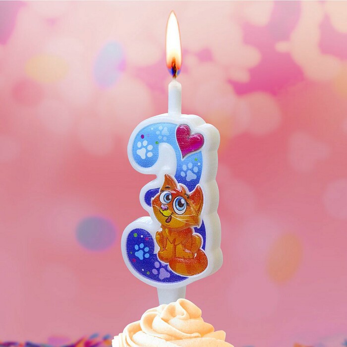 Свеча для торта Цифра Кошечка "3" 12см