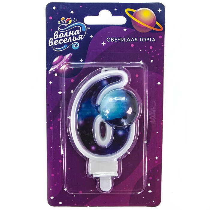 Свеча для торта Цифра Космос "6" 9см
