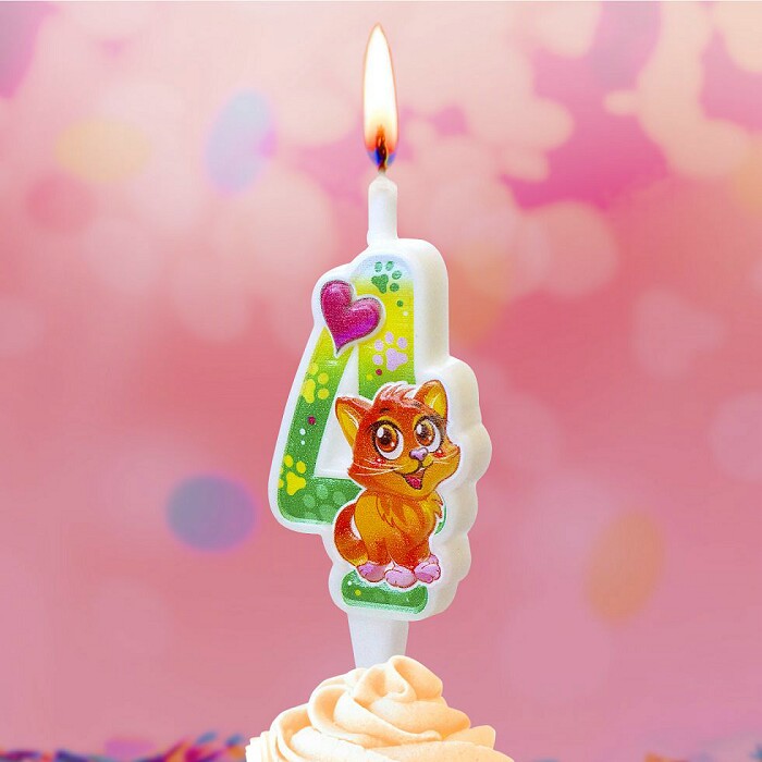 Свеча для торта Цифра Кошечка "4" 12см