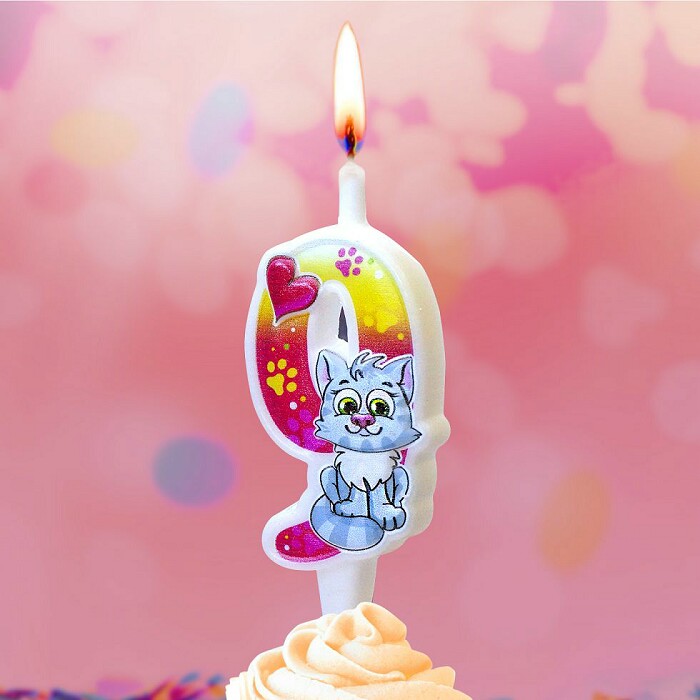 Свеча для торта Цифра Кошечка "9" 12см