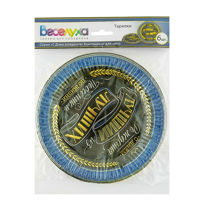 Тарелки бумага 180мм С Днем Рождения Комплимент для него (уп6)