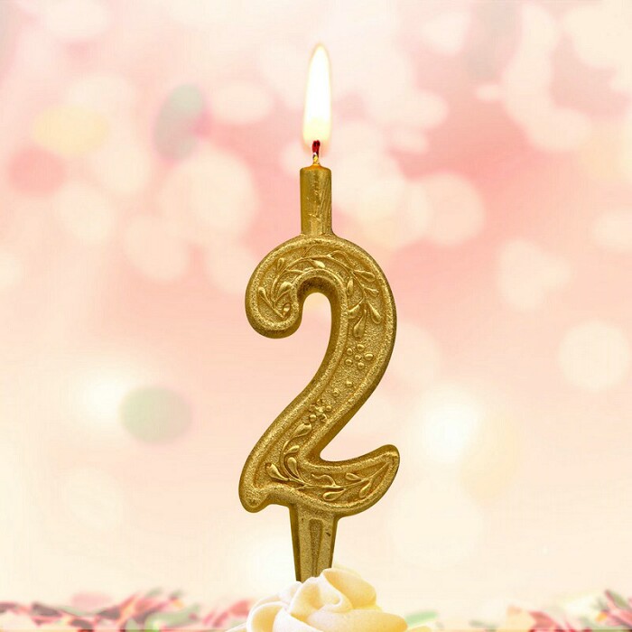 Свеча для торта Цифра Золотая узорная "2"