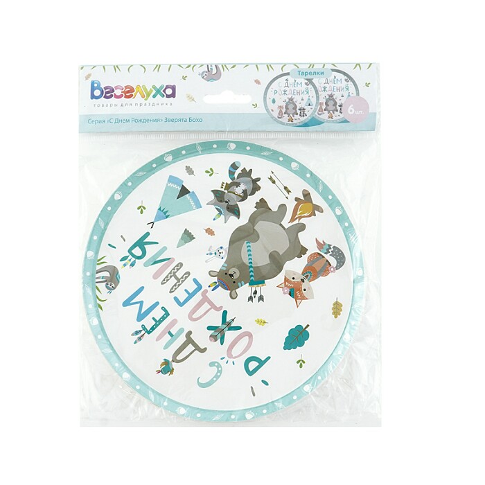 Праздничные тарелки "С Днем Рождения" Зверята Бохо идеально украсят праздничное мероприятие. Тарелки подходят как для холодных, так и горячих блюд.
