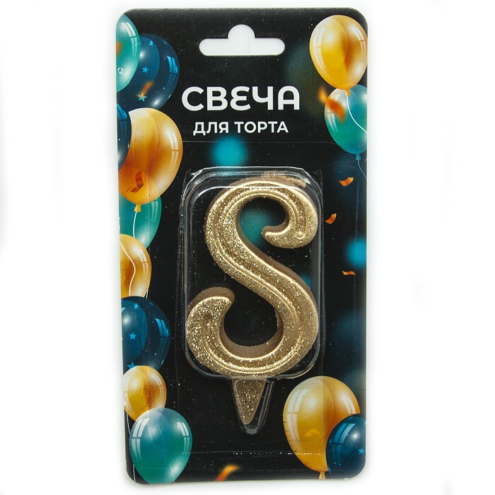 Свеча для торта Цифра Грация Золото с блестками "8" 7см