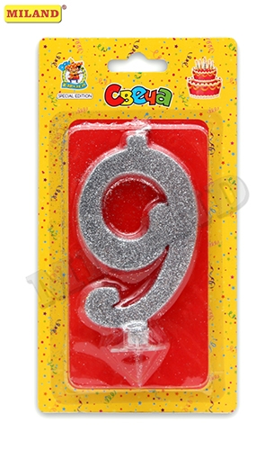 Свеча для торта Цифра Серебряный глиттер 9