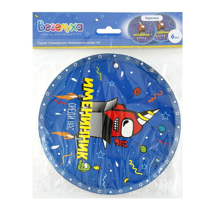 Тарелки бумага 180мм Геймерская Именинник Среди нас уп6