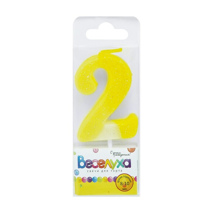 Свеча для торта Цифра Разноцвет с глиттером "2" 4,5см