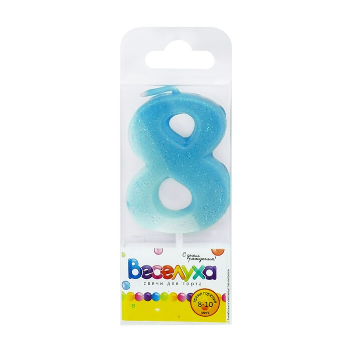 Свеча для торта Цифра Разноцвет с глиттером "8" 4,5см
