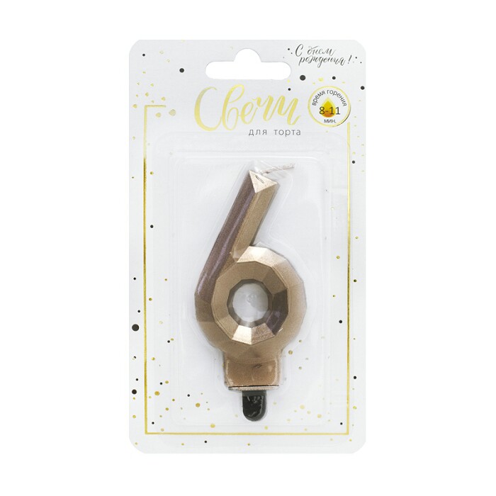 Свеча для торта Цифра Бриллиант Золото 6 1шт 7,5см