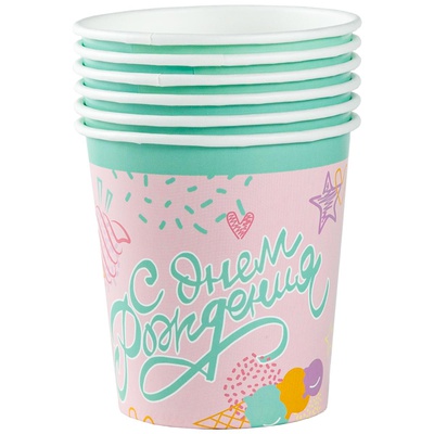 Стаканы бумага 190мл С Днем Рождения Мороженое уп6