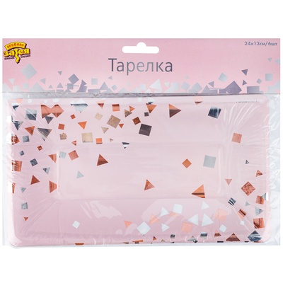 Бумажная ламинированная прямоугольная тарелка 24*13см. В упаковке 6 шт. Используется совместно с другими элементами коллекции по дизайну как украшение стола или по своему непосредственному назначению.