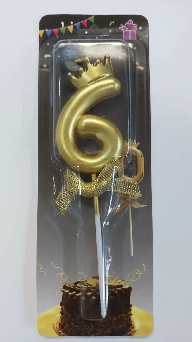 Свеча для торта Цифра корона Золото с бантом "6"