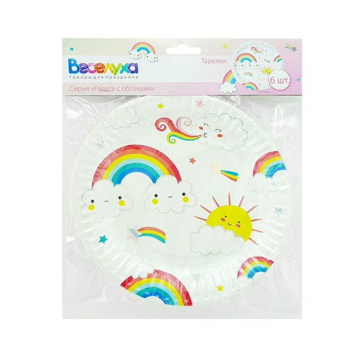 Тарелки бумага 180мм Радуга с облаками (уп6)