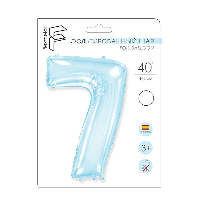 Шар фольга Цифра 40" Fm Светло Голубой Pastel Blue "7" (упак)