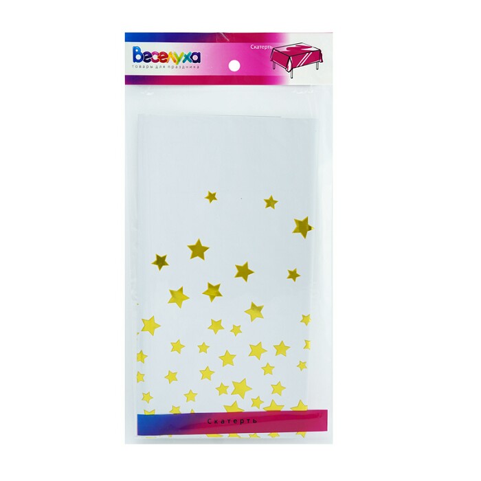 Скатерть ПЭТ 137х183см Звезды Золотые с золотой печатью