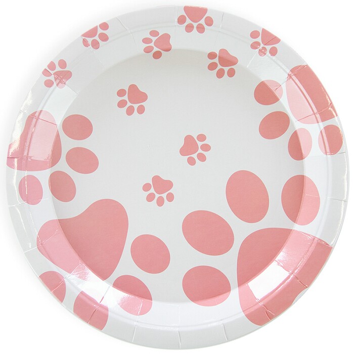 Тарелки бумага 180мм Лапки Белый Розовый (уп6)