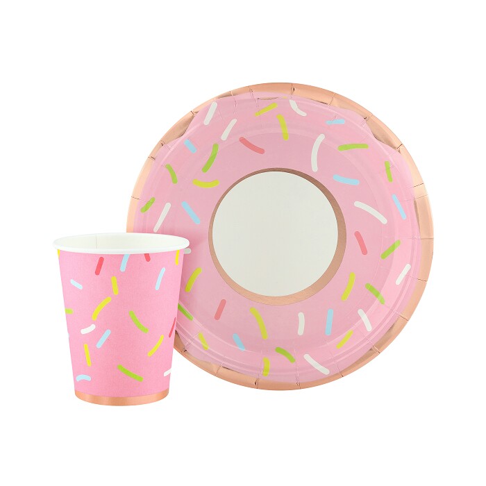 Тарелки бумага 180мм Сладкий Пончик Белый Розовое золото металлик (уп6)