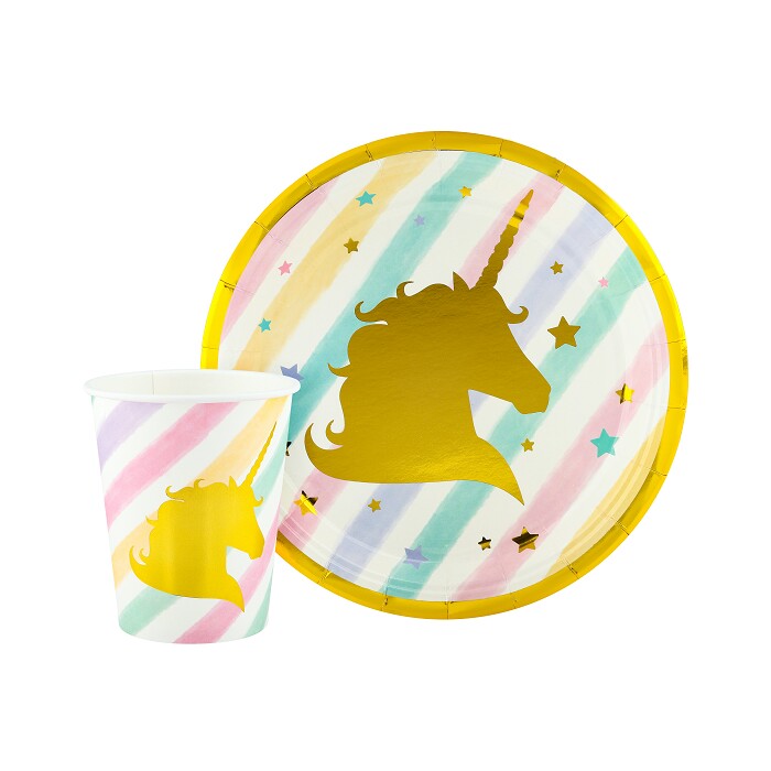 Тарелки бумага 180мм Полосатый Единорог Разноцветный металлик (уп6)