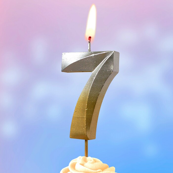 Свеча для торта Цифра на шпажке Золото-Серебро 7