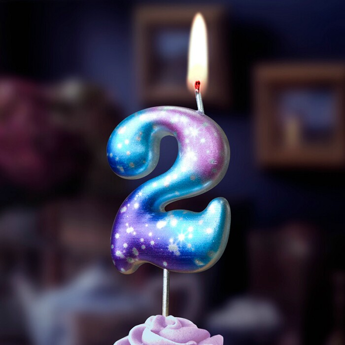 Свеча для торта Цифра Космос 2