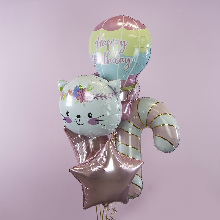 Фольгированный воздушный шар в виде фигуры. Имеет встроенный клапан. Приспособлен под гелий. Фольгированные воздушные шары изготавливаются из тонкой миларовой пленки, позволяющей шару не сдуваться в течение нескольких дней. Фольгированные воздушные шары надувают через клапан. Поэтому плотно надутый шар завязывать не требуется - обратный клапан хорошо удерживает гелий внутри шара. К шару привязывают ленту только для того, чтобы шар не улетел. Сдувшийся фольгированный шар можно поддуть гелием или воздухом и он всегда будет иметь товарный вид.