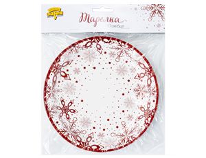 Стильная бумажная тарелка для Нового года с красным голографическим тиснением. Используется совместно с другими элементами коллекции как украшение стола или по своему непосредственному назначению. Размер 17 см, 6 штук в упаковке.