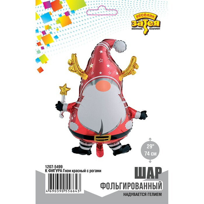 Большой объемный фольгированный шар высотой 74см в форме милого гнома. При надувании рекомендуется использовать гелий. Имеет встроенный клапан -что упрощает надувание. Поставляется в красочной упаковке с цветным изображением шара, благодаря чему можно выставлять товар в сдутом виде. Размер шара 60x74см. Тонкая миларовая (фольга на полиэтиленовой основе) пленка позволяет шарам не сдуваться до 5 дней.