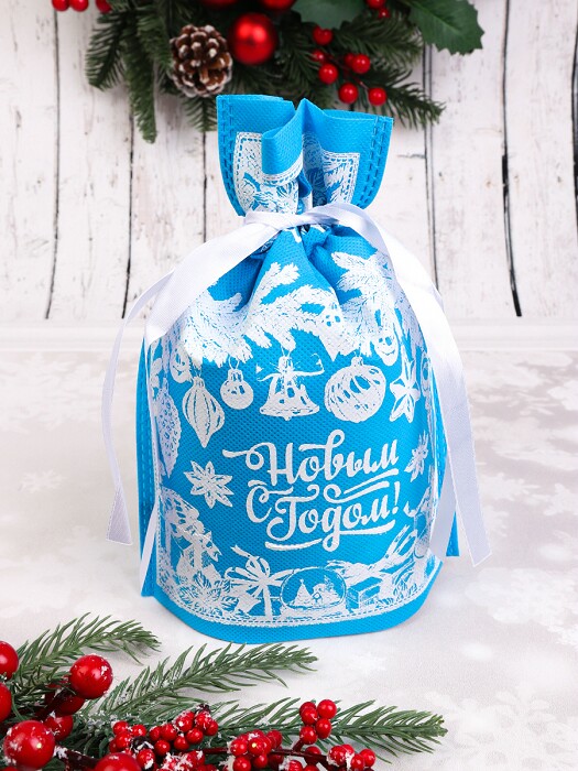 Мешок для подарков 36х24х12см С Новым Годом голубой
