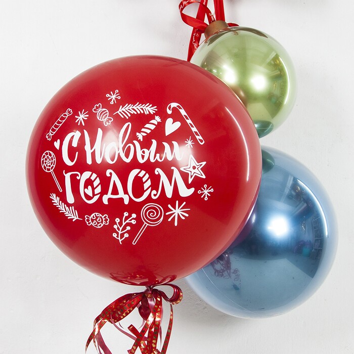 Шар латекс с рисунком 30''/Sp пастель С Новым Годом сладкий микс красный 015 2ст