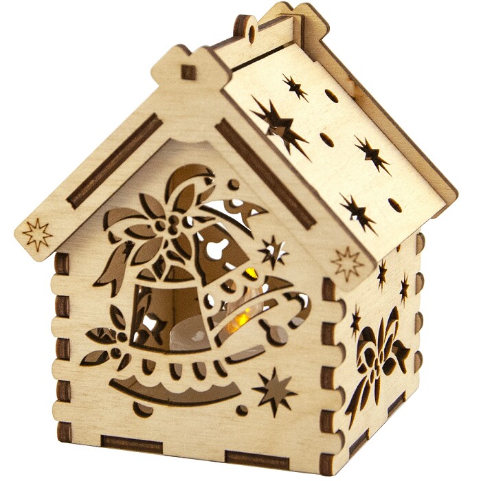Сборная модель с подсветкой Домик Новогодние колокольчики Дерево 9,5х6,5х6,5см