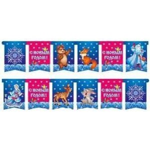 Гирлянда вымпел 200см С Новым Годом Дед Мороз и Снегурочка