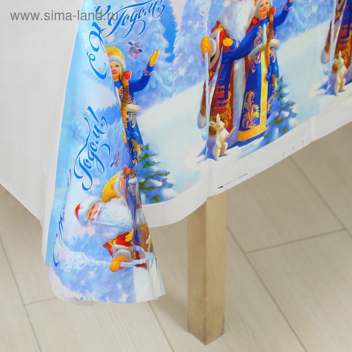 Скатерть ПЭТ 182х137см С Новым Годом Дед Мороз и Снегурочка