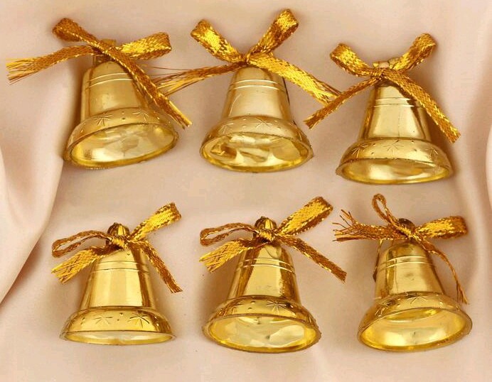 Игрушки на елку Колокольчики со звездочками и бантиком микс 3см (уп6)