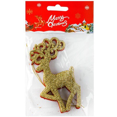 Подвеска пластик Олень красный золото 12см (уп2)